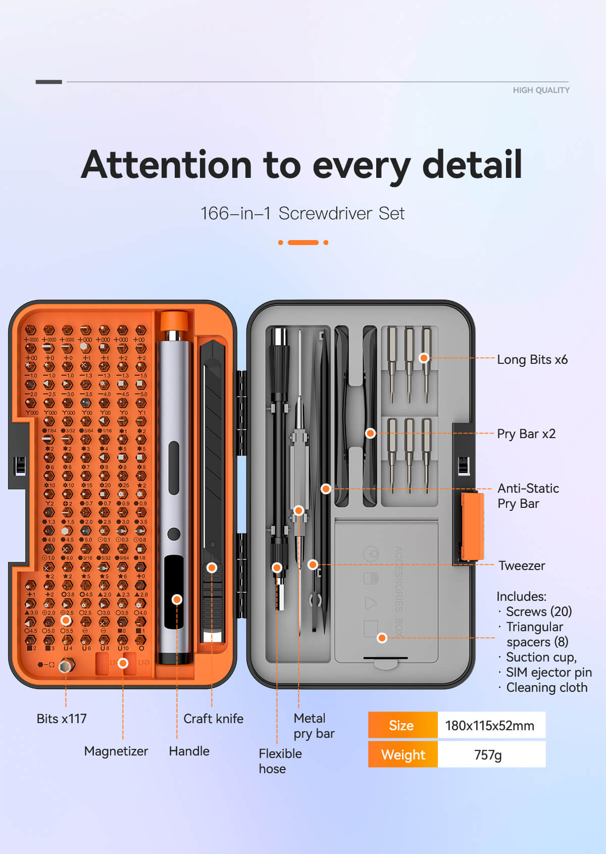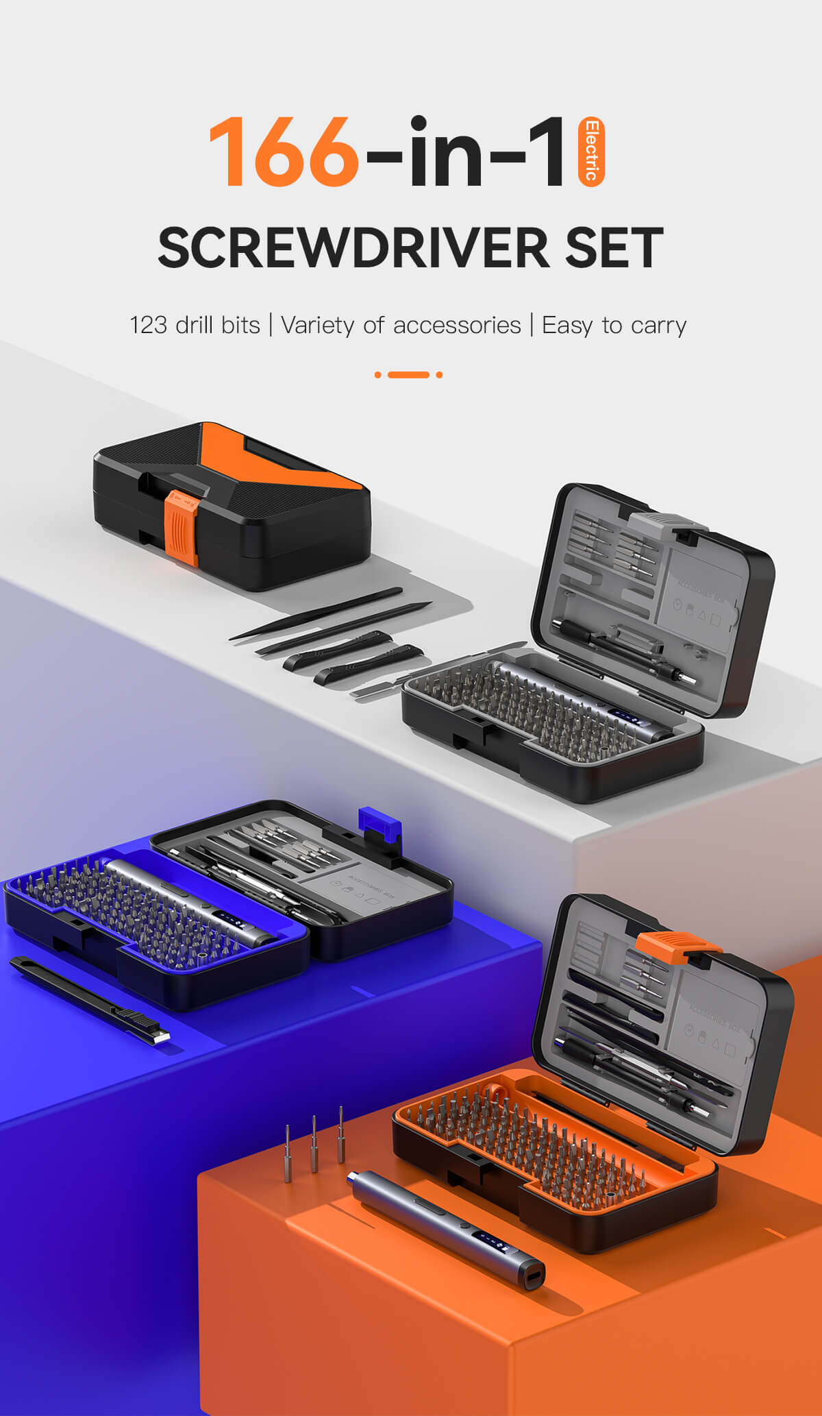 A versatile and high-value 166-in-1 screwdriver set designed for professional use and mass retail markets.
