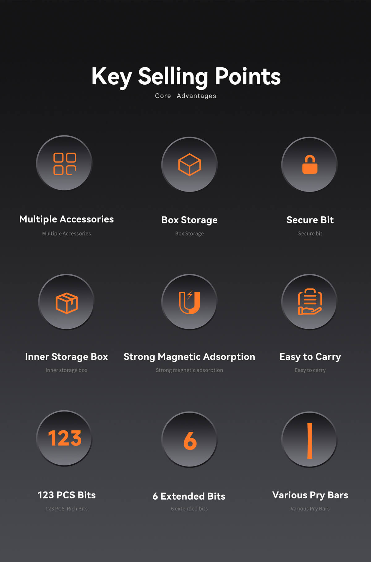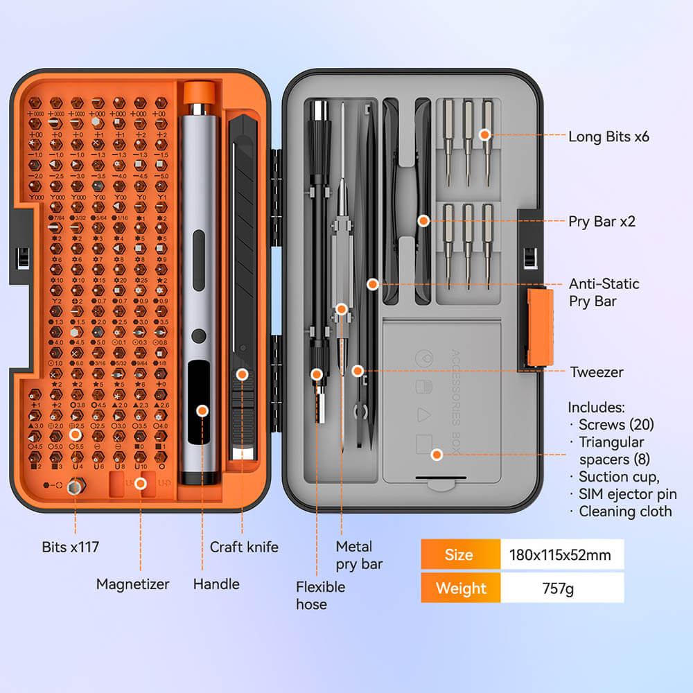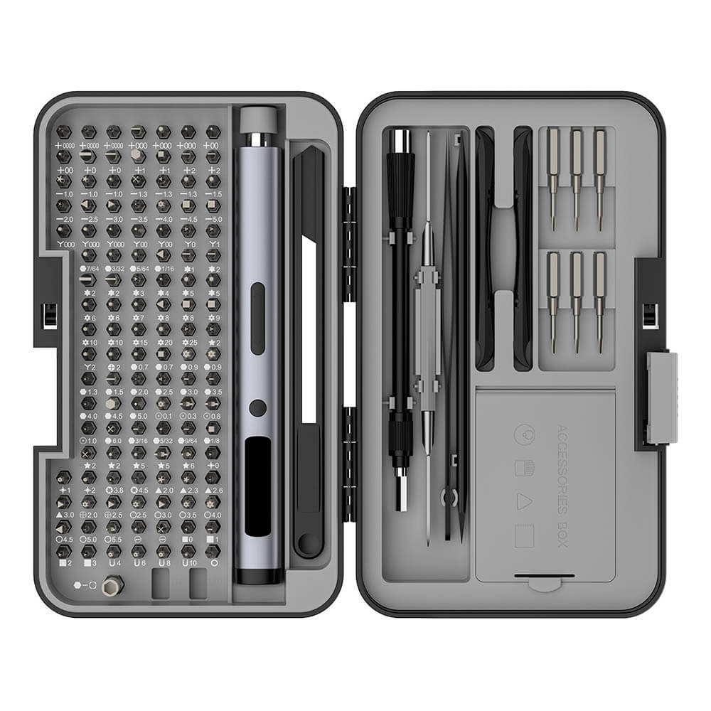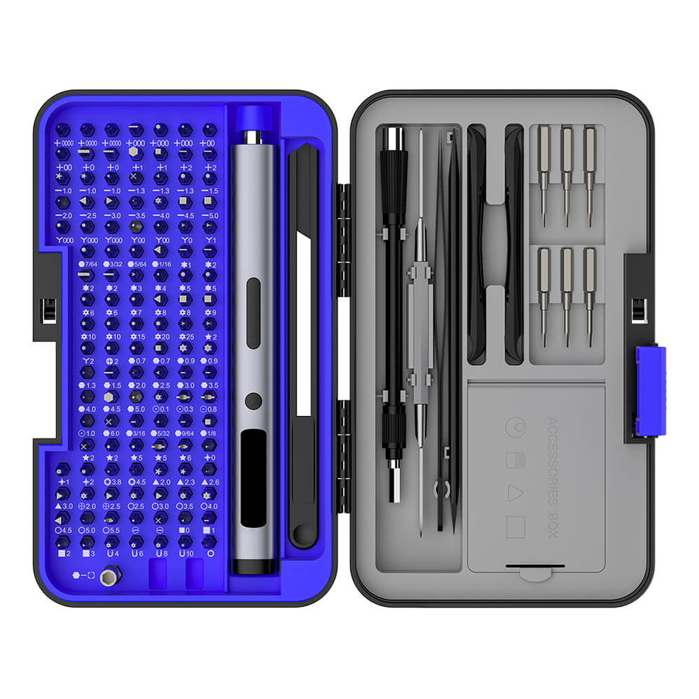 This complete tool kit includes 123 drill bits and a wide range of accessories, providing maximum flexibility for various applications such as home repair, furniture assembly, electronics, and DIY projects.